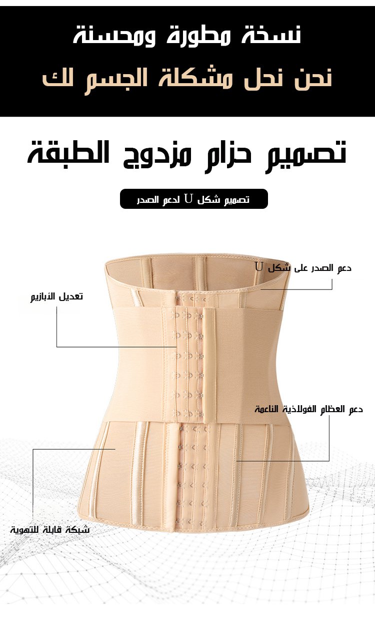 يستخدم 25 عظمة فولاذية من الذاكرة المستوردة من ألمانيا، ولا تتشوه حتى بعد مئة ألف انحناء! الخطاف الإضافي المزود به يمكن أن يستوعب جميع الأشكال، حتى 100 كيلوغرام يمكن أن يكون لها خصر نحيف! القماش الحريري + الألياف الخيزران الفحم، تتمتع بالامتصاص الرطوبة والتعرق، والقماش خفيف الوزن، وقدرة التهوية هي 3.5 أضعاف الأقمشة العادية! قم بتشكيل شكل الجسم S في غضون 10 أيام، نحن نضمن رد الأموال إذا لم يكن هناك أي تأثير!
